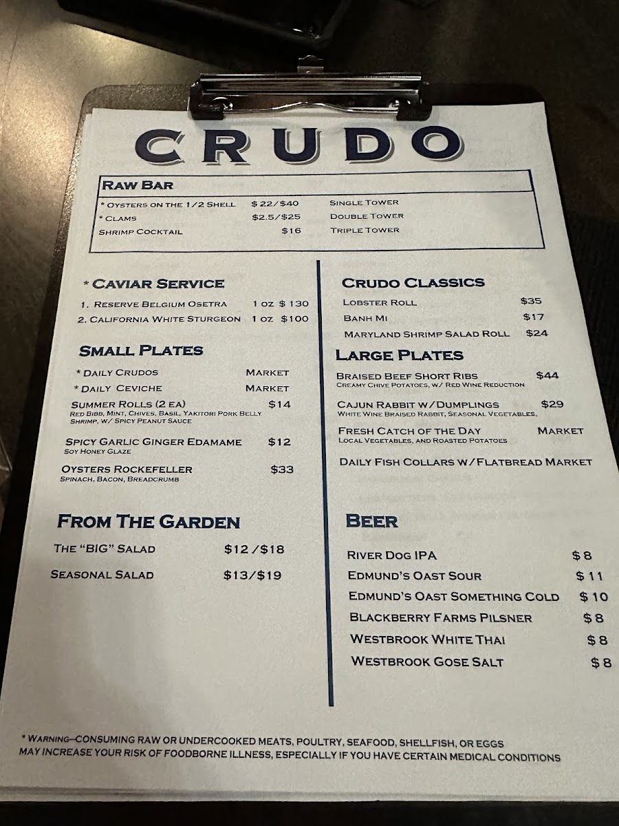 Despite being a higher-end restaurant, patrons agree that the prices reflect the quality and innovation of each dish. CRUDO is a place that not only invites you to indulge but also makes you feel welcomed and appreciated, making it a must-visit destination for food lovers.